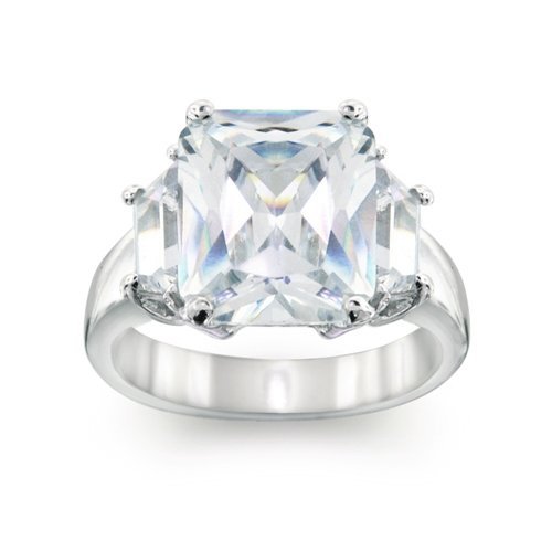 Bling Jewelry Kim Kardashian Style Engagement Ring Emerald Cut CZ with Trapezoid Sidestones Sterling Silver - Size 11 Features